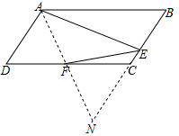 分析 连结并延长CF,交BC的延长线于点N,根据已知条件和平行四边形的性质可证明△NCF≌△ADF,所以NF=AF,NC=AD,再由已知条件AE⊥BC于E,∠FEC=54°,即可求出∠B的度数.