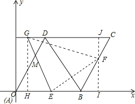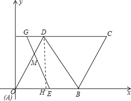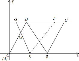 分析 (1)根据菱形的四条边都相等,菱形ABCD的顶点A与平面直角坐标系中的点O重合,AB在X轴上,其边长为6cm,∠DAB=60°,可以求得点D的坐标,从而可以求得点C的坐标;