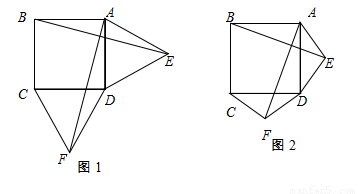如图1,在正方形ABCD的外侧,作两个等边三角形ADE和DCF,连接AF,BE.