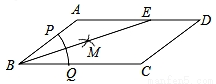 如图,在□ABCD中,AB=3,BC=5,以点B的圆心,以任意长为半径作弧,分别交BA、BC于点P、Q,再分别以P、Q为圆心以大于