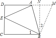 分析 过B作BN⊥DA交延长线于N,在DN延长线上截取NM=CE,则四边形DCBN是正方形,根据正方形的性质得到BC=BN,证得△BCE≌△BNM,根据全等三角形的性质得到BE=BM,∠1=∠2,于是推出∠ABM=45°,证得△ABE≌△ABM,根据全等三角形的性质得到AM=AE=5,设CE=MN=x,DE=6-x,AN=5-x,由勾股定理得到AD=$\sqrt{{5}^{2}-(6-x)^{2}}$=6-(5-x),解得:x=2或3,BM=$\sqrt{B{N}^{2}+M{N}^{2}}$=2$\sqrt{10}$或3$\sqrt{5}$,即可得到结论.