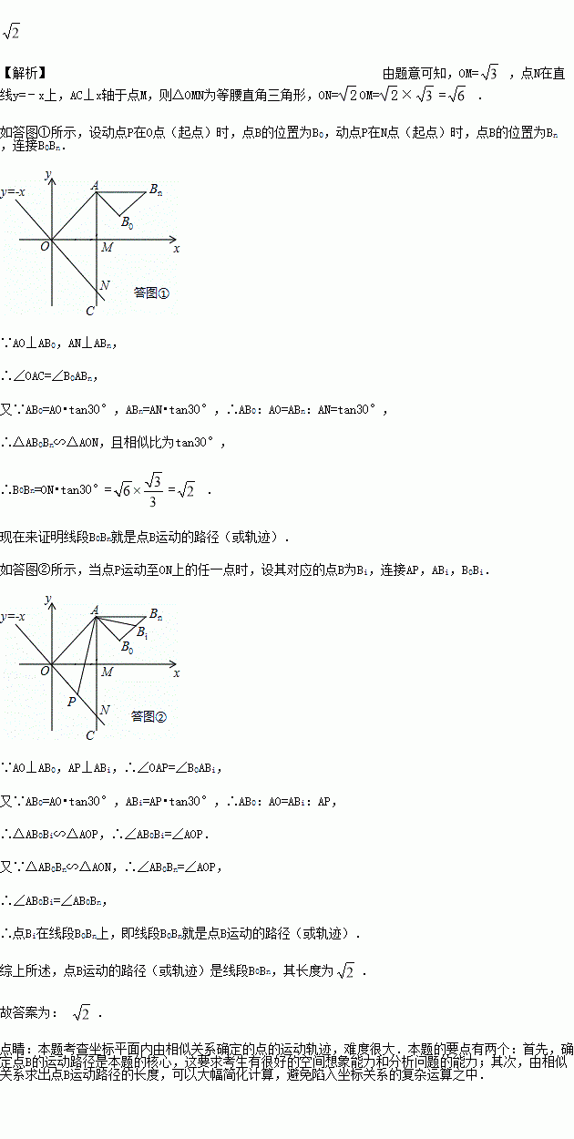 的一个定点,AC⊥x轴于点M,交直线y=﹣x于点N.若点P是线段ON上的一个动点,∠APB=30°,BA⊥PA,则点P在线段ON上运动时,A点不变,B点随之运动.求当点P从点O运动到点N时,点B运动的路径长是______.