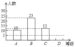 某区教育局为了解今年九年级学生体育测试情况,随机抽查了某班学生的体育测试成绩为样本,按A、B、C、D四个等级进行统计,并将统计结果绘制成如下的统计图,请你结合图中所给信息解答下列问题: