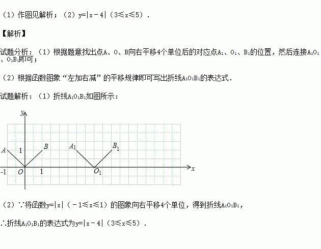 (1)将折线AOB向右平移4个单位,得到折线A1O1B1,画出折线A1O1B1;