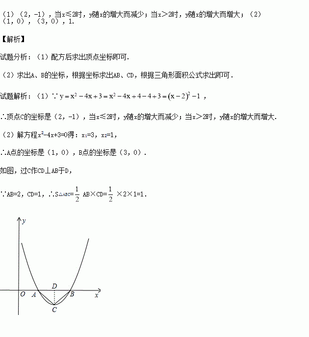 (1)用配方法求其图象的顶点C的坐标,并描述该函数的函数值随自变量的增减而变化的情况;