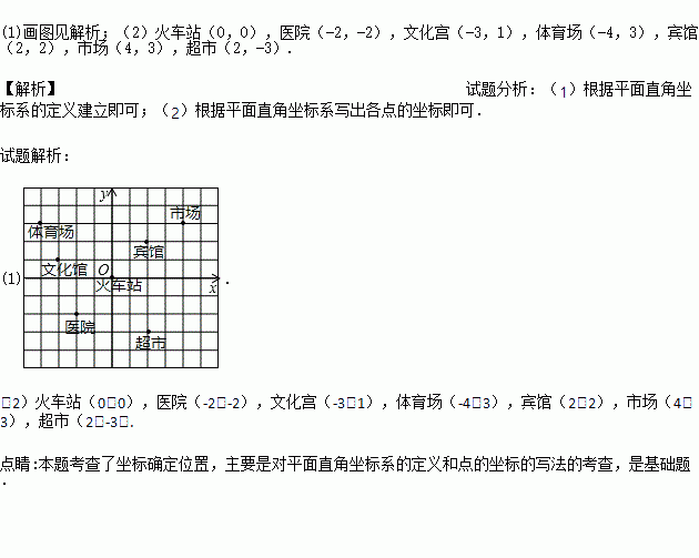 如图,这是某市部分简图(图中小正方形的边长代表1km长).以火车站为坐标原点建立平面直角坐标系.