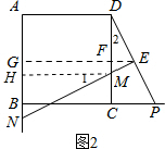 (2)作MH∥BC交AB于点H,如图2,则MH=CB=CD,先证明∠1=∠2,然后根据“ASA”可证明△DPC≌△MNH,从而得到DP=MN.