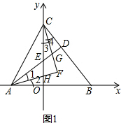 (2)根据题意可得∠ECD=∠EAH,CF和AF分别平分∠BCO和∠BAD,从而可以求得∠1=∠2=∠3=∠4,从而推出△GCD和△GAF的三个内角分别相等,从而可以求得∠AFC的度数.