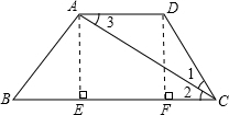 分析:作梯形的两条高,构造了一个矩形和两个直角三角形.根据角平分线的定义和平行线的性质得到等腰三角形ACD,即CD=AD=5.再根据锐角三角函数的概念得到AE:BE,结合勾股定理得到BE:AB=3:5,从而求得BE的长,再进一步计算出CF和EF的长.