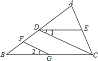 如图所示,已知∠1=∠2,DE∥BC,你能判断出图形中还有哪些角是相等的吗?(写出两对相等角即可)