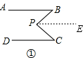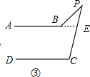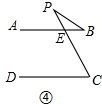 分析:在①②中过P作PE∥AB,分别根据内错角相等、同旁内角互补,可得到∠B与∠P、∠C的关系;在③中延长AB交PC于点E,在④中设AB交PC于点E,则根据同位角相等和三角形外角的性质可得出∠B和∠P、∠C的关系.