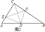 (2)如图2,连接CD,与EF交于点Q,根据直角三角形的性质得到CD=DB=$\frac{1}{2}$AB,于是得到∠DCB=∠B,由轴对称的性质得到∠CQF=∠DQF=90°,推出∠DCB+∠CFE=90°,由于∠B+∠A=90°,于是得到∠CFE=∠A,即可得到结论.