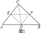 分析 (1)如图1,连接CD,由已知条件得到△ABC是等腰直角三角形由于△CEF与△ABC相似,于是得到△CEF也是等腰直角三角形求得∠CEF=∠A=45°,于是得到EF∥AB,由轴对称的性质等等EF⊥CD,求出CD⊥AB,根据直角三角形的性质即可得到结论;