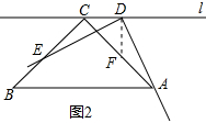 (2)证明:过点D直线l的垂线,交AC于点F,如图2所示.![]()