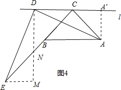 ②当点D在C点的左侧时,过点A作AA′⊥直线l于点A′,过点D作DN⊥直线L交CB的延长线与点N,过点E作EM⊥DM于点M,如图4所示.