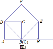 ( III)当点G与点B重合时,如图3,同理可证:△DAG≌△GHE,