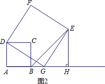 ( I)当点G在点B的左侧时,如图1,同(2)①可证得:△DAG≌△GHE,![]()