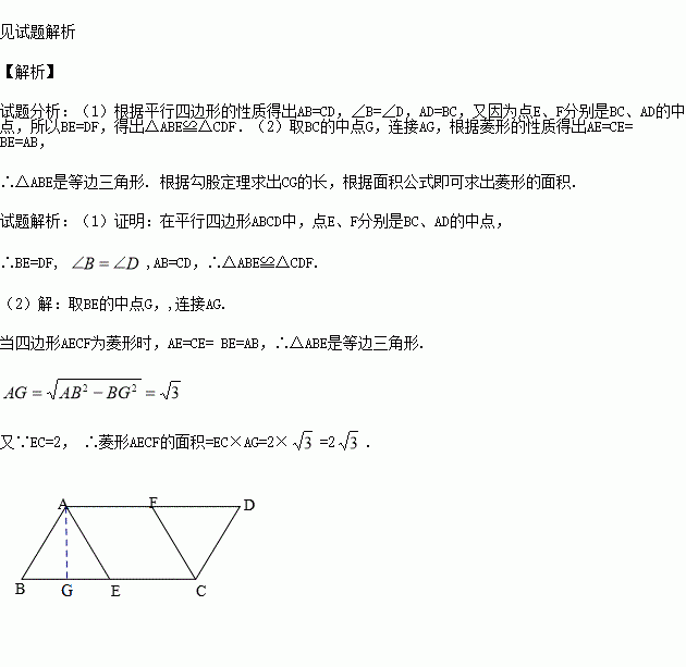 (2)当四边形AECF为菱形时,求出该菱形的面积.