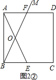 (2)可分点F在CD上和点F在AD上两种情况进行讨论.当点F在CD上时,如图2①,易证Rt△ABE≌Rt△BCF(HL),则有∠BAE=∠CBF,由此可证到∠AOB=90°,然后在Rt△ABE中,运用面积法就可求出BO的长;当点F在AD上时,如图2②,易证Rt△ABE≌Rt△BAF(HL),则有∠BAE=∠ABF,根据等角对等边可得OB=OA,根据等角的余角相等可得∠AEB=∠EBF,根据等角对等边可得OB=OE,即可得到OA=OB=OE,只需求出AE的长就可解决问题.