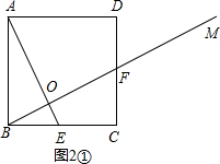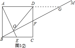 ②延长AD,交射线BM于点G,如图1②,由△ABE≌△BCF可得BE=CF,由此可得CF=DF,从而可证到△DGF≌△CBF,则有DG=BC,从而可得DG=AD,然后运用直角三角形斜边上的中线等于斜边的一半即可解决问题;