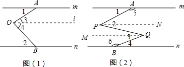 解:过O作QM∥m,PN∥m,如图(2)