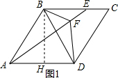 分析 (1)如图1过B作BH⊥AD于H,证得△ABD是等边三角形,得到∠BAD=60°,求出BH=3$\sqrt{3}$,即可得到结果;