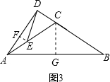 分析 分三种情况进行讨论:①如果AB=AC,过E点作CD的平行线交AD于F.②如果BA=BC,过E点作CD的平行线交AD于F.③如果CA=CB,过E点作CD的平行线交AD于F,作CG⊥AB于G.利用锐角三角函数的定义、平行线分线段成比例定理可求出∠ADE的正切值.