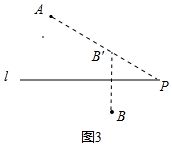 (3)如图3中,作点B关于直线l的对称点B′,连接AB′,延长AB′交直线l于点P,点P即为所求.![]()