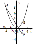| 解:(1)将点A(-4,8)的坐标代入 将点B(2,n)的坐标代入 则点B关于x轴对称点P的坐标为(2,-2), 直线AP的解析式是 令y=0,得 |
