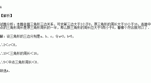 (2013•德阳)如果三角形的两边分别为3和5,那么连结这个三角形三边中点所得三角形的周长可能是( )