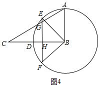 ②若∠EHB是等腰△BHE的顶角,如图4,![]()