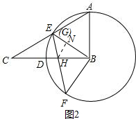 此时E与G重合,△ABE是等边三角形,如图2.![]()