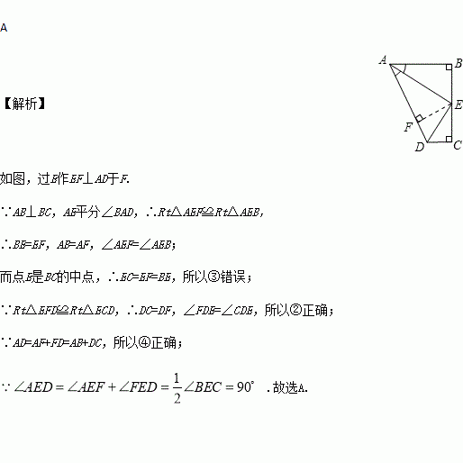①∠AED=90° ②∠ADE=∠CDE ③DE=BE④AD=AB+CD,四个结论中成立的是( )