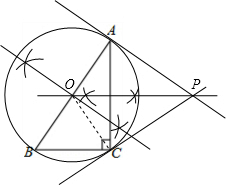 分析 (1)利用直角三角形外接圆的性质,可得斜边中点为点O,以O为圆心,OA为半径作⊙O,然后根据切线的判定定理作出过点A的⊙O的切线PA;
