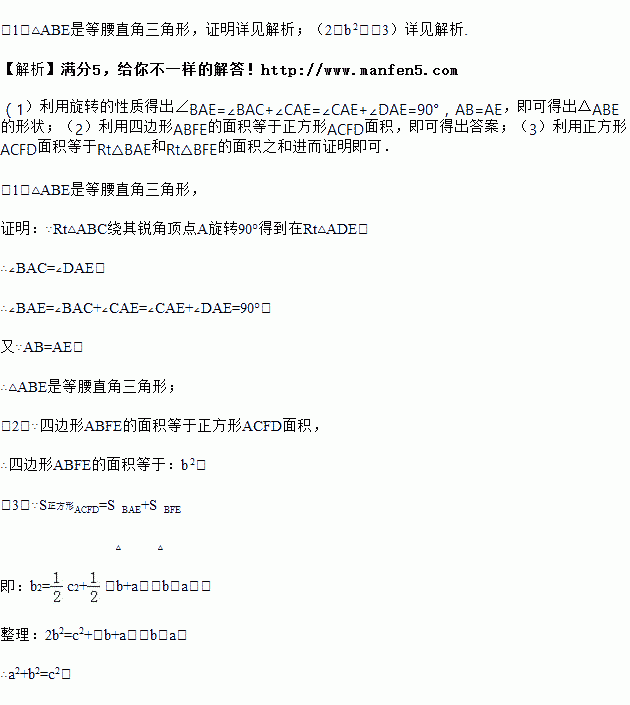 如图,将在Rt△ABC绕其锐角顶点A旋转90°得到在Rt△ADE,连接BE,延长DE、BC相交于点F,则有∠BFE=90°,且四边形ACFD是一个正方形.