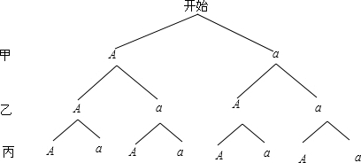分析 分别用A、a表示手心和手背,先画树状图展示所有8种等可能的结果数,找出甲打乒乓球的结果数,然后根据概率公式求解.