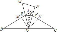 (2)解:过D作DM⊥AB于M,DG⊥EF于G,DN⊥AC于N,由已知条件得到BM=$\sqrt{3}$DM=$\sqrt{3}×\sqrt{3}AM=3AM$,求得BM=6,AM=2,同理AN=2,由(1)证得△BED∽△CDF∽△DEF,通过△DME≌△DGE,同理△DGF≌△DNF,得到ME=GE,FG=FN,即可得到结论.