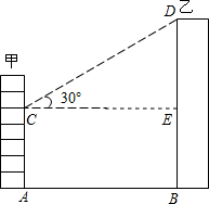 分析 首先确定AC的高度,甲楼每层高都是3.1米,从甲楼的第六层往外看乙楼楼顶,所以AC=15.5米,又因为BD为40米,所以DE=24.5米,再利用正切的概念计算即可.