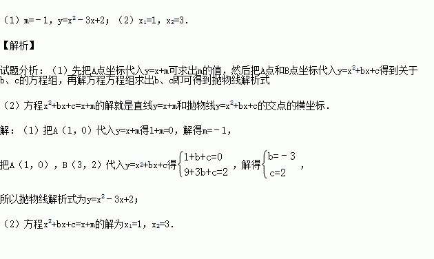 (2015秋•信丰县月考)直线y=x+m和抛物线y=x2+bx+c都经过点A(1,0),B(3,2).