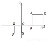 如图,正方形ABCD和正方形OEFG中,点A和点F的坐标分别为 (3,2),(-1,-1),则两个正方形的位似中心的坐标是( )