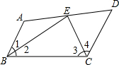 已知四边形ABCD中,AB∥CD,∠1=∠2,∠3=∠4,求证:BC=AB+CD.