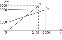 解答:解:设y1与x的函数关系式为y1=k1x+b1,y2与x之间的函数关系式为y2=k2x,由函数图象,得