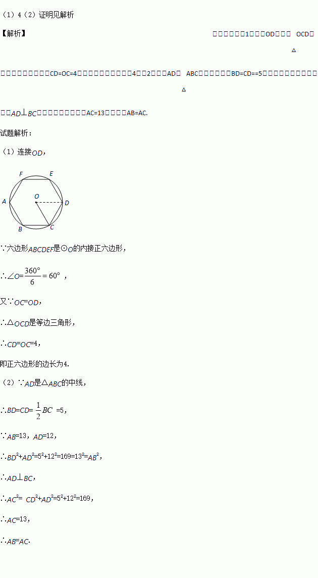 (1)如图1,在圆内接正六边形ABCDEF中,半径OC=4.求正六边形的边长.