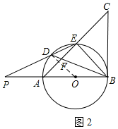 (2)易证OD∥DE,从而可知$\frac{PD}{DE}=\frac{PO}{OB}$,易证△EDF∽△BDE,DE2=DF•DB,从而可求出DB的长度,由勾股定理可知AB的长度.