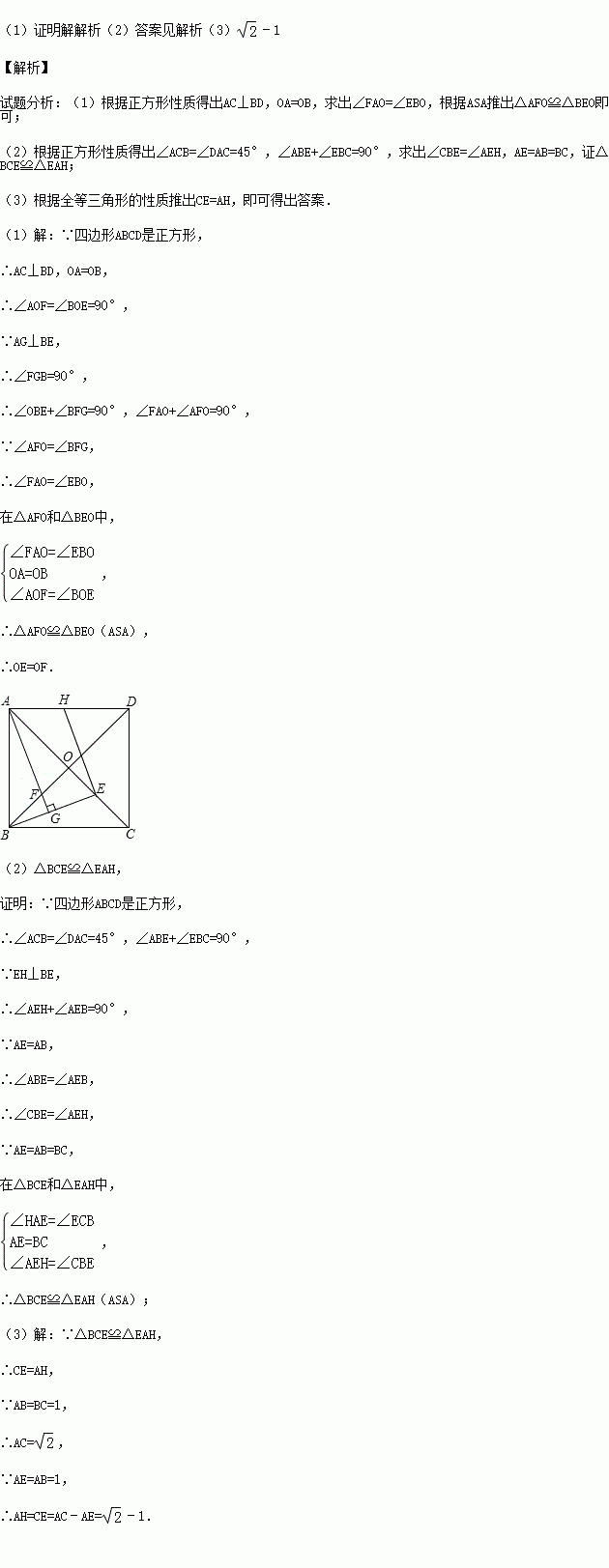 (3)在(2)的条件下若该正方形边长为1,求AH的长.