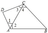 分析 (1)由已知条件可证得△ADC∽△ACB,得出D=∠4,再由已知条件和三角形内角和定理得出∠1+2∠1=180°,求出∠1=60°,即可得出∠DAB的度数;