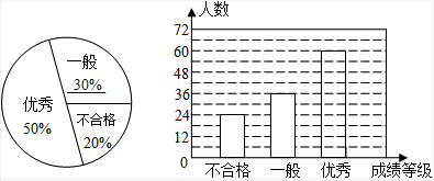分析 (1)根据扇形统计图所给出的数据求出一般所占的百分比,再根据不合格的人数和所占的百分比求出总人数,再乘以优秀所占的百分比,即可得出优秀的人数,从而补全统计图;