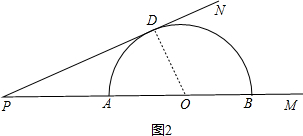 ﹙3﹚∵PN与圆切于D,连接OD,如图2,![]()