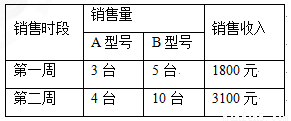 某超市电器销售每台进价分别为200元、170元的A、B两种型号的电风扇,下表是近两周的销售情况: