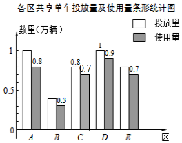 C区共享单车的使用量为:4×85%-0.8-0.3-0.9-0.7=0.7(万辆),